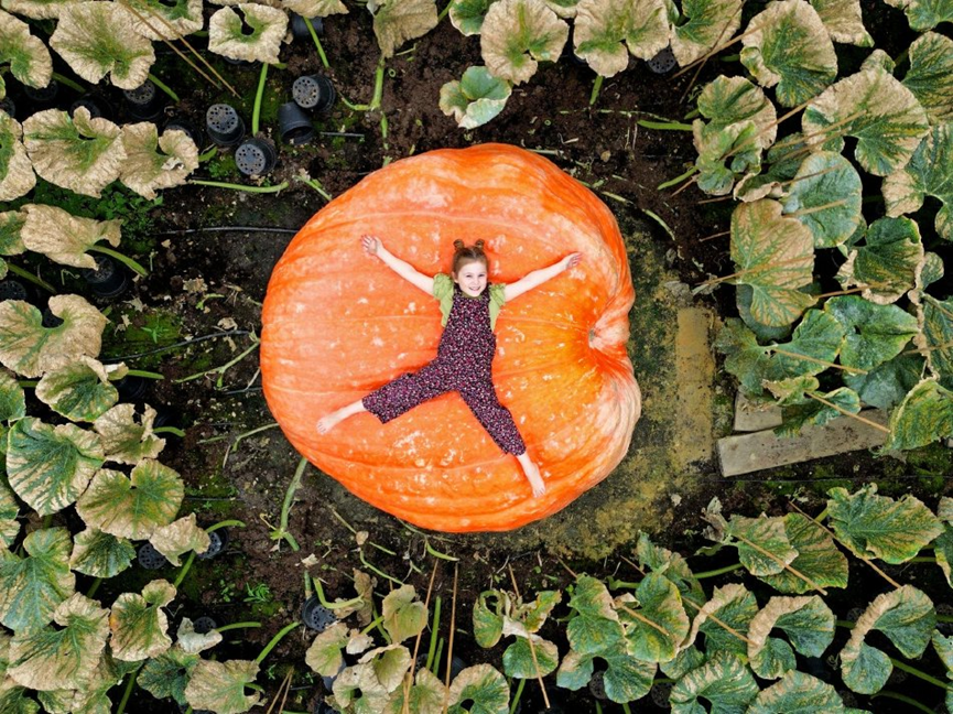 如何能够直观呈现这个巨型南瓜之大,是新闻摄影应该思考的“形象化”问题。如果仅仅孤立地拍摄这个南瓜,并不能让读者了解它的大小。因为在摄影的表现中,一个普通的小南瓜也能被拍摄得巨大。在媒体刊发的关于这个巨大南瓜的一组图片中,有几张为瓜农伊恩6岁的孙女和巨大南瓜的合影,小女孩或躺在南瓜一旁的地面上,或躺在南瓜的上方。我们对1.1吨巨大南瓜缺少视觉经验,无法想象出它到底有多大,但是我们对6岁孩子的身体大小却是有经验和记忆的。通过孩子与南瓜这两种事物的“同框”,我们自然就形成了对1.1吨重南瓜的视觉经验。在这里,6岁孩子的身躯作为已知的视觉经验,起的是桥梁和中介作用,她的作用是衬托对比未知的巨型南瓜,从而帮助我们建构新的视觉经验。