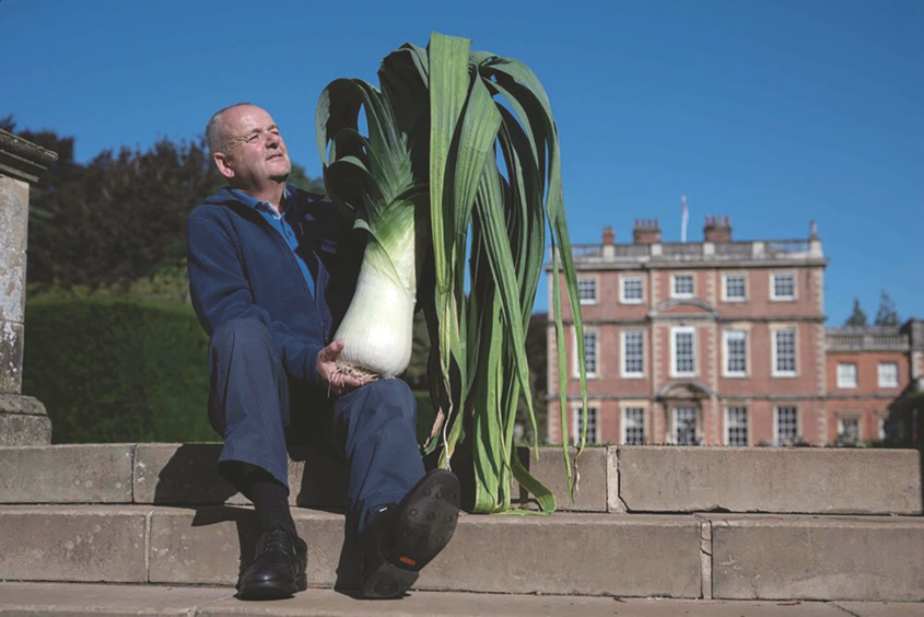 当地时间2024年9月13日,在英国英格兰里彭附近的纽比庄园举行的哈罗盖特秋季花展上,斯蒂芬-帕维斯手持他那重大8.96千克的韭菜,荣获巨型蔬菜比赛中最重韭菜类别的第一名。(图片来源:人民摄影,2025年2月26日04版“环球”)